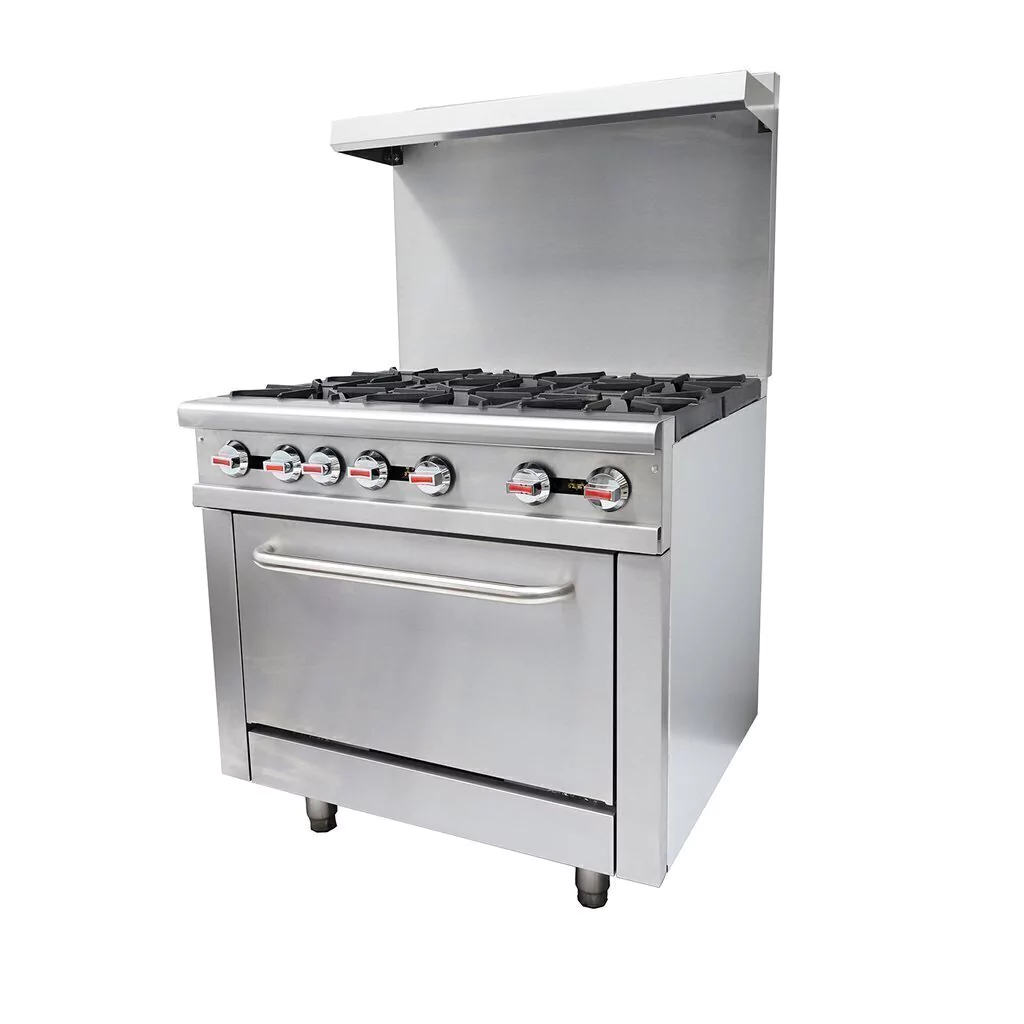 Seis quemadores superiores abiertos, cada uno de 30.000 BTU / h